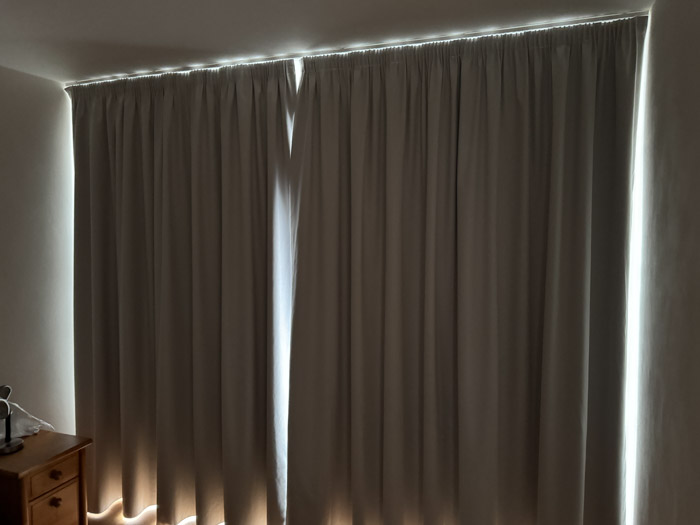 - společně s kolejnicí, která je v ložnici ohnuta na míru, jsme dosáhli 100% zatemnění