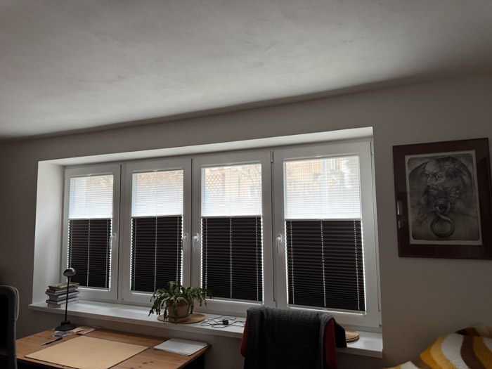- Plisé žaluzie na schodiště, látka 3680 zabraňuje pohledům zvenčí