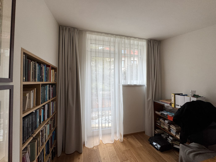 - stejné látky na závěs i záclonu byly použity i do šatny, pracovny i ložnice